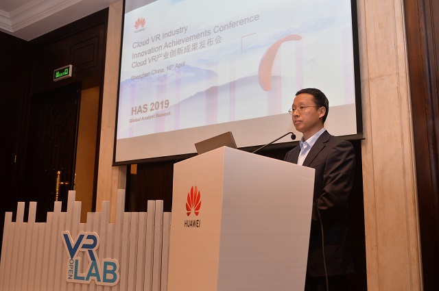 华为传送与接入产品线总裁靳玉志在Cloud VR产业创新成果发布会上致辞